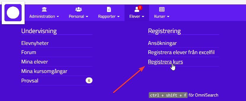 Gå via ikonen Elever och välj Registrera kurs: