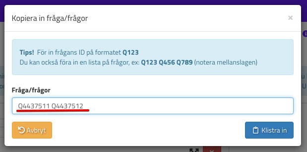 Önskar ni kopiera frågorna ovan? Tryck på denna knapp i er uppgift och klistra in detta Q4437511 Q4437512