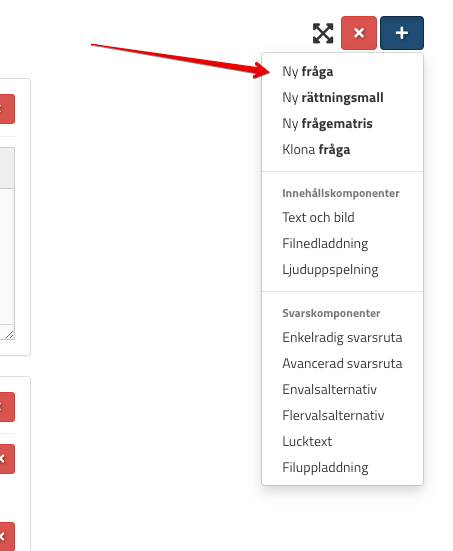 När ni skapar frågor i uppgifter kan ni använda verktyget "Frågematris" i anslutning till frågan.