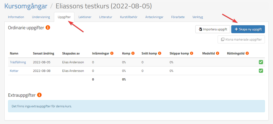 Observera att du behöver kryssa för att Förkunskapskrav måste vara godkända. Annars räcker det att uppgiften lämnas in, oavsett resultat. För att lektioner ska registreras som godkända måste samtliga frågor vara korrekt besvarade.