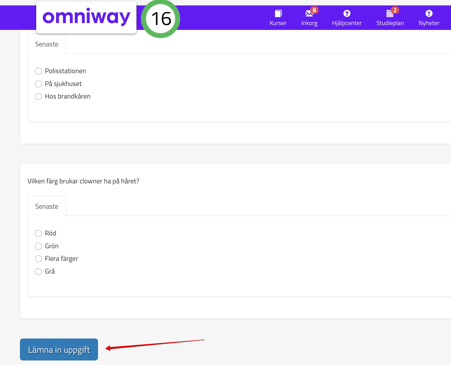 När uppgiften är tillgänglig och eleven trycker på Starta uppgift kommer den hit: